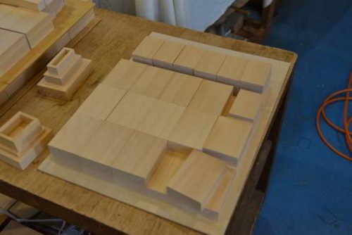 板屋根違い三社宮(大)の土台組立
