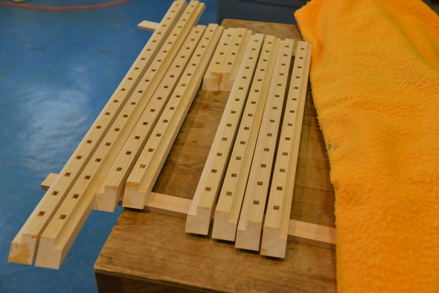 格子の外枠の加工神棚2026.02.09神域用の天井の格子の加工を進めています。角鑿の修理が終わったので穴あけを行い鑿で底を掃除しました。基本的に格子は2方の胴付きで止めて加工します。明日もきっといい日です。けん