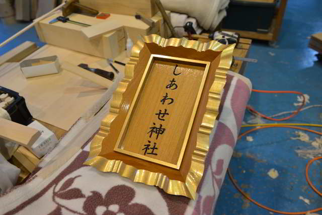 神額の溢れていた糊を取り、ビズで板を固定し、埋め木をしておきました。