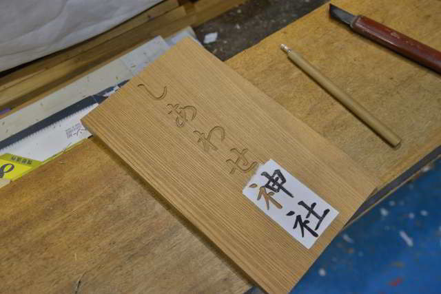 文字の位置を決め、板に貼ってから、彫刻刀をしっかりと研ぎました。