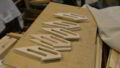 文字の位置を決め、板に貼ってから、彫刻刀をしっかりと研ぎました。