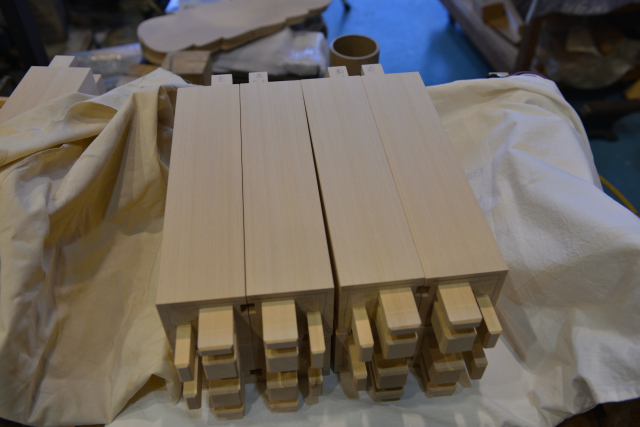 霊舎台の仮組を分解して、まだ少しきつい所があったので、際鉋で調整をしました。