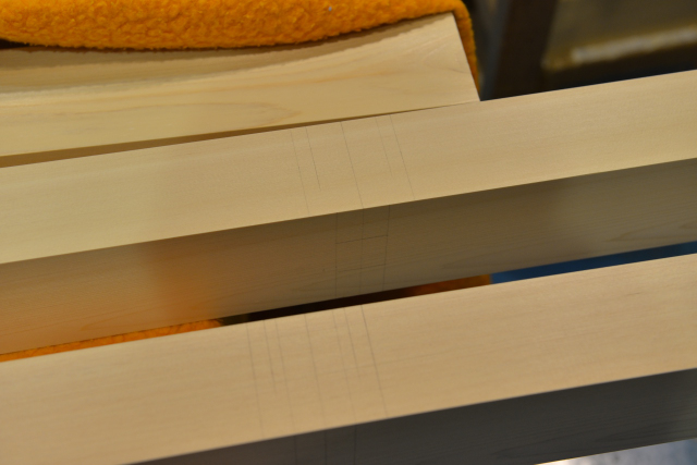 2枚ずつ張り合わせをして、押えた時にずれないように切り落とす所に釘を打っておきました。