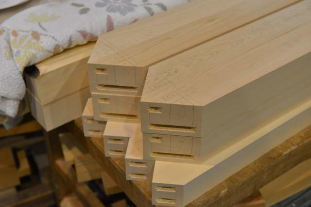 霊舎台の框の留めにサネ穴を空けました。