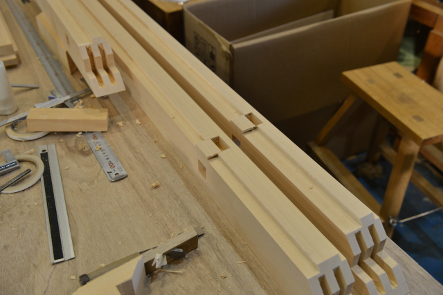 構造部分殆ど完成しましたので次は格子は別で製作した物を落とし込む形で取り付けるため