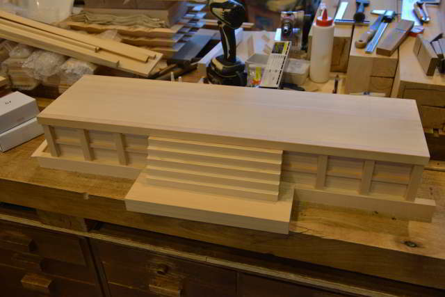 胴部品の仕上げをしてから、階段を土台に取り付けました。