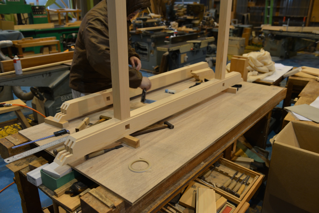 上枠をもう1度仮組をして、隙間が空いていないのを確認したので、明日は本組をします。