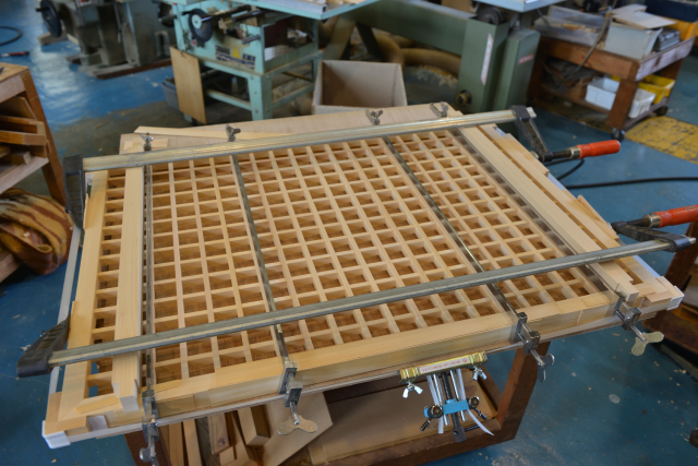 神域用の天井の中央の格子を組み立てしました。