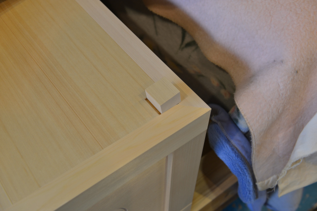 次は上に乗る厚畳のズレ止めとして、木片を入れておく穴を空けました。