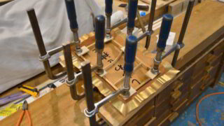 ひとりごと神額の組立 神額の部品を軽くペーパー掛けをしました。 神額を組み立てて、内の縁は少し反っているので突っ張り棒で押させておきました。 明日もきっといい日です。 しん 3尺型御霊舎の製作を進めていきます。 正面巾木をを取り付けしたので上部と同...2025.11.10ひとりごと