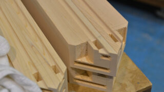 神棚霊舎台の製作 霊舎台の框と柱に格狭間板の溝を付きました。 板屋根違い三社宮(大)で使う、むちかけが少なかったので木取をして大きさを決めました。 仕上げをして、長さを切り、面を取れるように機械を合わせておきました。 その後は霊舎台の框のホゾ穴を鑿...2025.12.16神棚神具御霊舎