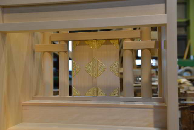 3尺型御霊舎の御扉御霊舎2025.10.293尺型御霊舎の製作を進めていきます。組み立てた御扉に金物を取り付けしました。まだ長押の方に六葉金具を取り付けいないのでそれを打ってから本体へ御扉を固定します。明日もきっといい日です。けん