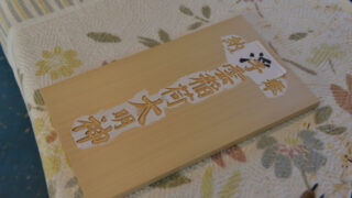 神具神額の文字彫刻 神額の内縁の留めを切り、長さを決めました。 文字を紙に印刷して、文字間などを詰めて、拡大コピーをして、位置と大きさの調整をしました。 位置を決めたので、板に貼り、彫刻刀をしっかりと研いで、彫刻を始めました。 明日もきっといい日です...2026.03.24神具御霊舎