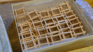 神具灯篭火袋の製作 灯篭火袋の製作を進めていきます こちらは一番細かい部品で井桁の1本の巾は2㎜程で加工が大変面倒な部品です。 こちらは製作する時数が全く読めない為いつも大量につくって火袋に必要な数だけ組立をしています。 工場の桜は満開前に散り始めて...2026.04.03神具