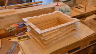 神具神額の製作 組み立てた時に少し溢れたノリを取ってから、枠と板をビスで繋ぎ、埋め木をしました。 少し金色を薄くなっていた所があったので、金を塗り直してから表面のクリア塗装をしました。 裏に止め木を取り付けて、後は裏面のクリア塗装をすれば完成です。...2025.09.12神具お稲荷さん